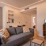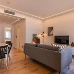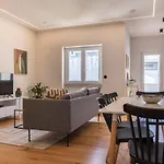 LisboaのCampo de Ourique地区にあるCharming Design Apartmentアパ-トはウンベルト・デルガ-ド空港から10キロメ-トル離れています. 器具でいっぱいの台所は電子レンジ と冷蔵庫がある台所で快適な滞在を提供しています.